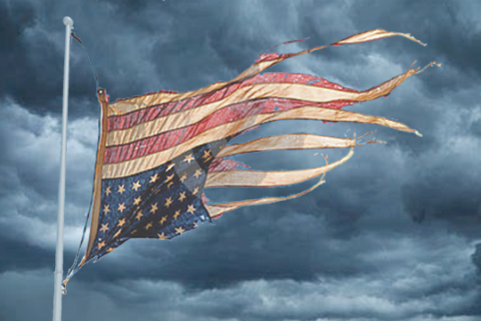 The American flag*, once a symbol of Strength, Unity, and Freedom, has lost its reverence amongst its people and now waves over a nation in distress.